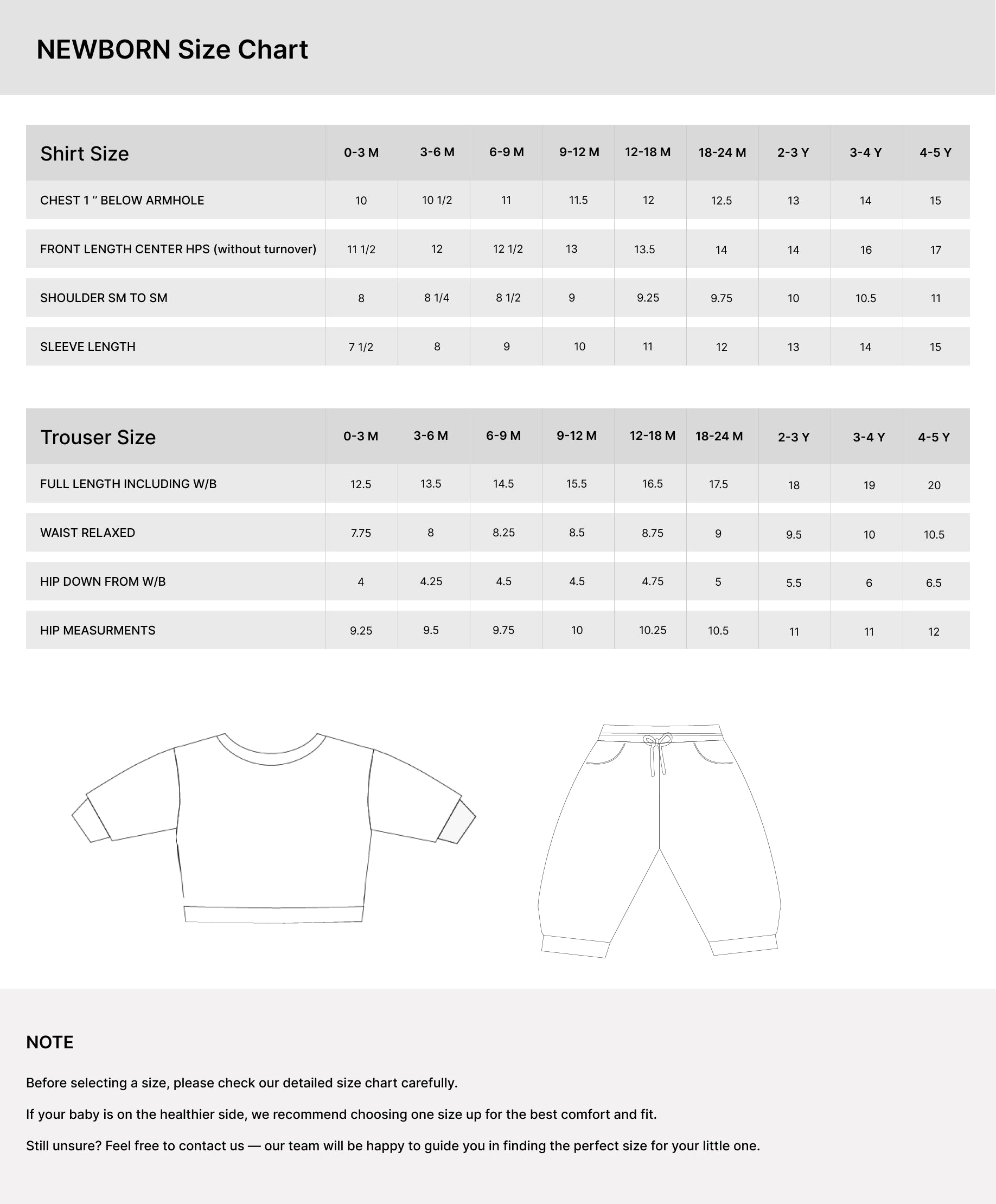 Still unsure? Feel free to contact us — our team will be happy to guide you in finding the perfect size for your little one.